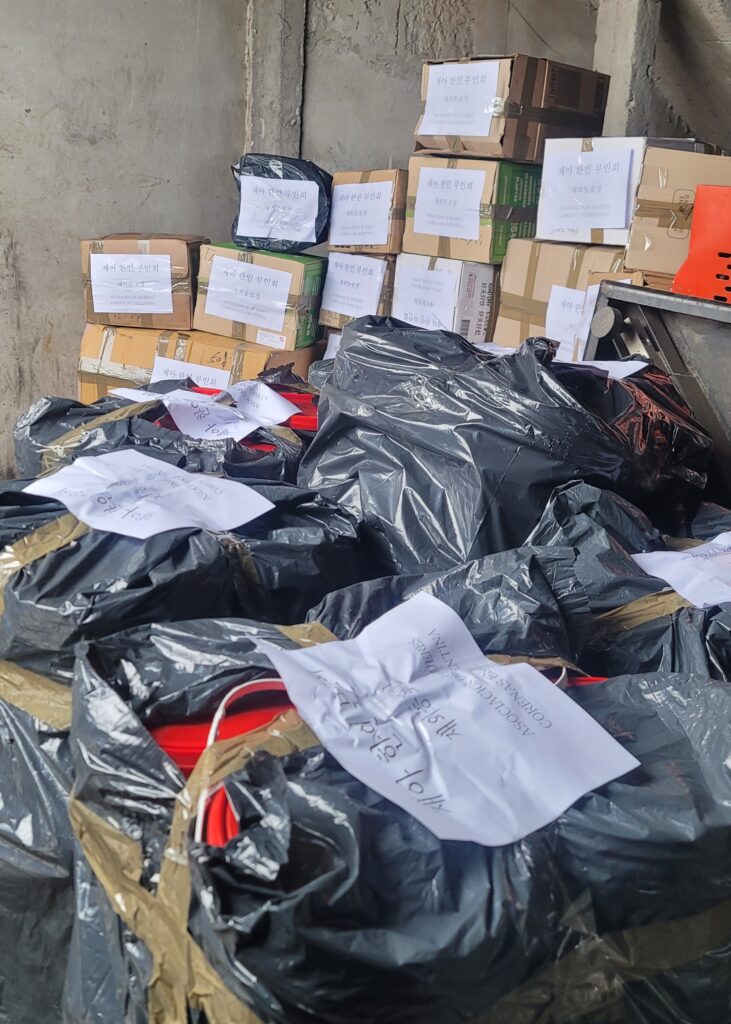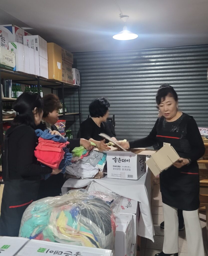 부인회 김현숙 회장 집에 모여서 분류와 포장을 했었다.