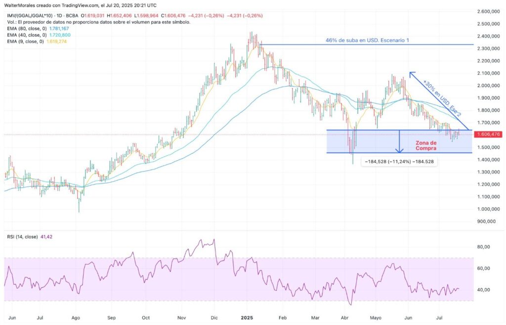 Visualizamos tres escenarios, de los cuales sólo dos vemos posibles. El primero donde la recuperación de los activos de riesgo es de 30%; y el segundo donde la suba sería de 46%, en ambos casos en dólares. El mercado espera volatilidad, pero también cree en este análisis y lo barato que están los activos argentinos, por eso desde abril recompra acciones cuando se encuentran en valores similares a los actuales, como se ve en el gráfico que sigue.